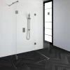 Deze complete inloopdouche bestaat uit een inloopwand en een draaibare zijwand met koper beslag. Inclusief glasbehandeling en optionele kunststof profielen. De hoogte van de inloopdouche is 200 cm. Hij is 97,7 cm breed en maximaal 200 cm diep. Deze inloopdouche straalt luxe uit door zijn design en kleur.