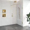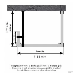 Deze complete inloopdouche bestaat uit twee inloopwanden en en een zijwand met RVS beslag. Inclusief glasbehandeling. De hoogte van de inloopdouche is 200 cm. Hij is 118,3 cm breed en 97,7 cm diep. Deze inloopdouche straalt luxe uit door zijn design en kleur.