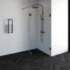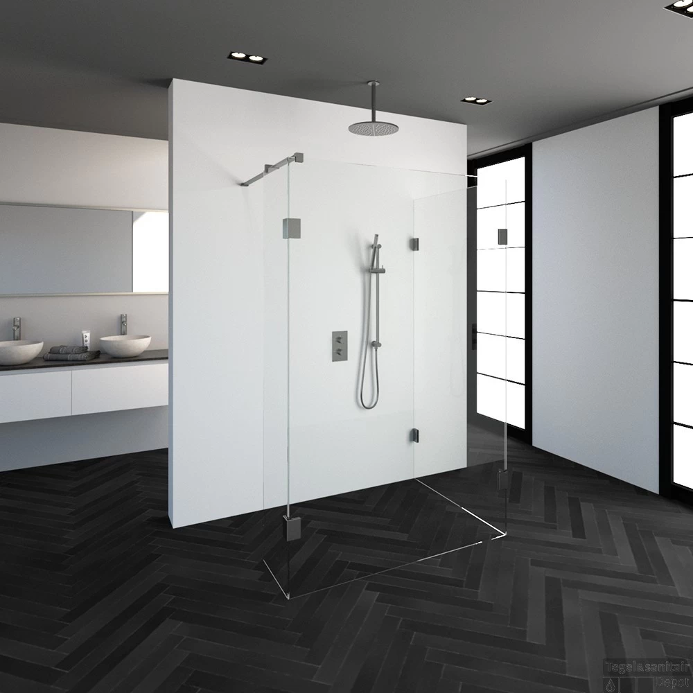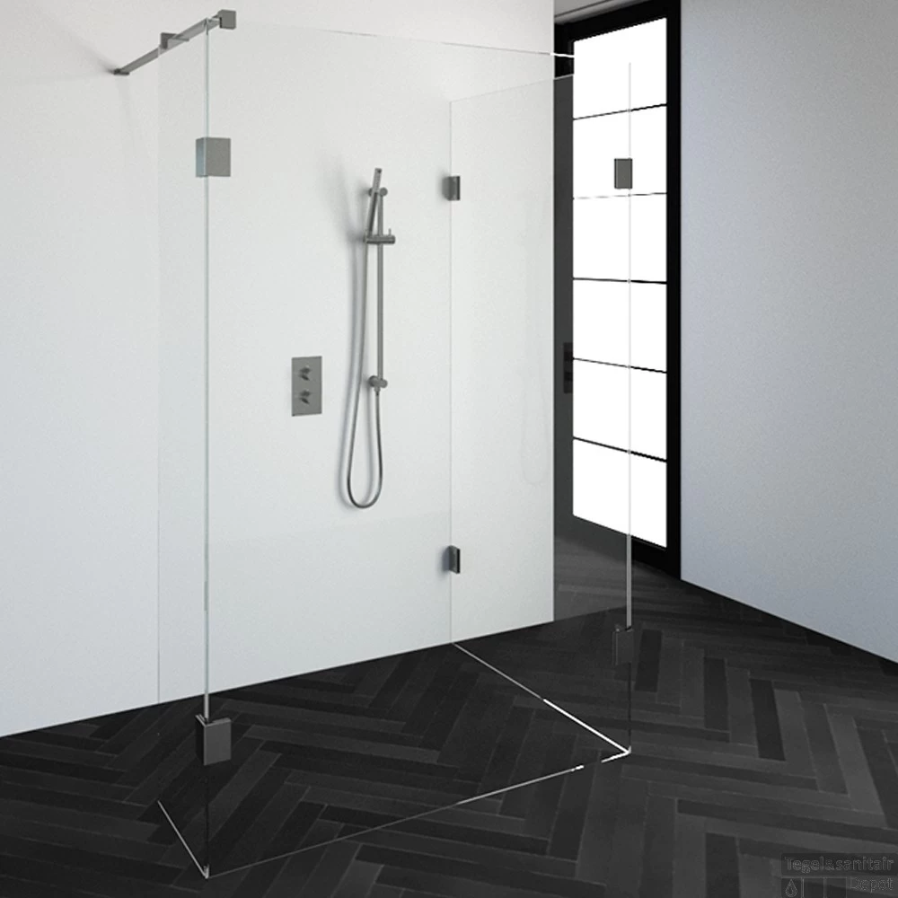 Deze complete inloopdouche bestaat uit twee inloopwanden en en een zijwand met RVS beslag. Inclusief glasbehandeling. De hoogte van de inloopdouche is 200 cm. Hij is 128,3 cm breed en 97,7 cm diep. Deze inloopdouche straalt luxe uit door zijn design en kleur.