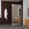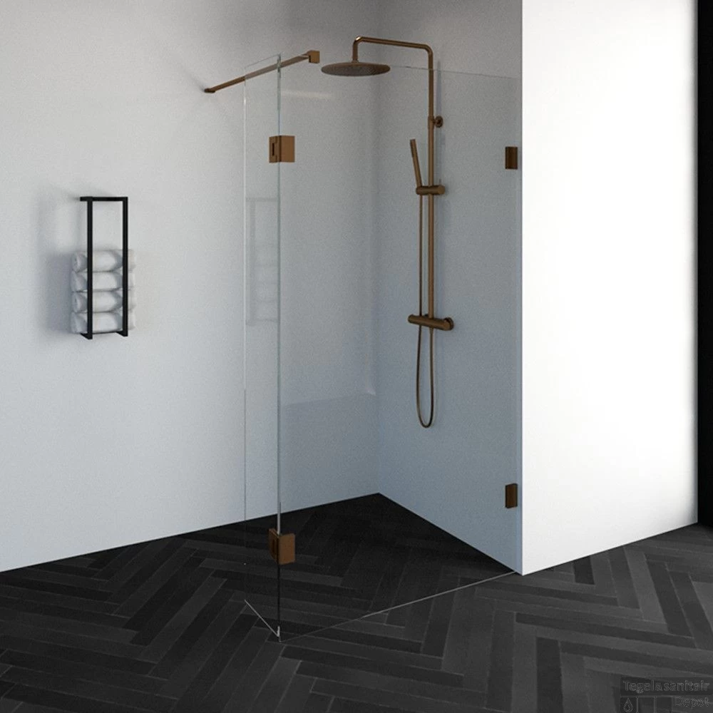 Deze complete inloopdouche bestaat uit een inloopwand en een draaibare zijwand met koper beslag. Inclusief glasbehandeling en optionele kunststof profielen. De hoogte van de inloopdouche is 200 cm. Hij is 107,7 cm breed en maximaal 200 cm diep. Deze inloopdouche straalt luxe uit door zijn design en kleur.