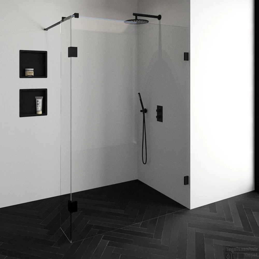 Deze complete inloopdouche bestaat uit een inloopwand en zijwand met Mat Zwart beslag. Inclusief glasbehandeling. De hoogte van de inloopdouche is 200 cm. Hij is 137,7 cm breed en maximaal 200 cm diep. Deze inloopdouche straalt luxe uit door zijn design en kleur.