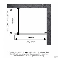 Deze complete inloopdouche bestaat uit een inloopwand en Goud beslag. Inclusief glasbehandeling. De hoogte van de inloopdouche is 200 cm. De cabine is 77,7 cm breed en maximaal 200 cm diep. Deze inloopdouche straalt luxe uit door zijn design en kleur.