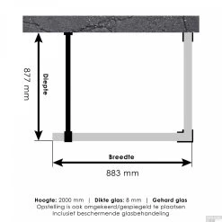 Deze complete inloopdouche bestaat uit twee inloopwanden met koper beslag. Inclusief glasbehandeling. De hoogte van de inloopdouche is 200 cm. Hij is 88,3 cm breed en 87,7 cm diep. Deze inloopdouche straalt luxe uit door zijn design en kleur.