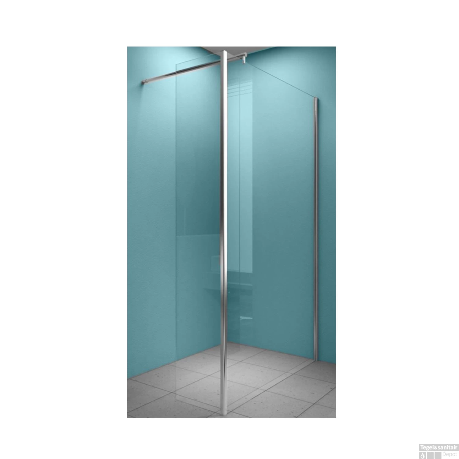 Een kant en klare inloopdouche voorzien van een zijwandje van 30cm breed. De wand is tot 20mm te verstellen, de muurprofiel is van aluminium en het 8mm dik veiligheidsglas is voorzien van een NANO antikalk coating.
