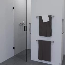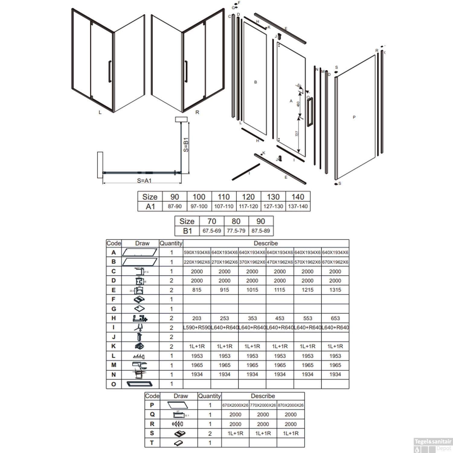 De klapdeur is voorzien van een aluminium profiel in de kleur chroom. De douchedeur heeft een standaard hoogte van 200 cm, terwijl de glasdikte 6 mm bedraagt. De glaswanden van dit artikel zijn voorzien van een anti-kalk coating die ervoor zorgt dat kalk- en zeepresten zich minder snel aan het glas hechten. Desalniettemin adviseren wij om de glasplaten na een douchebeurt altijd af te spoelen met koud water en deze droog te trekken: op deze manier behoudt het glas het beste haar glans.