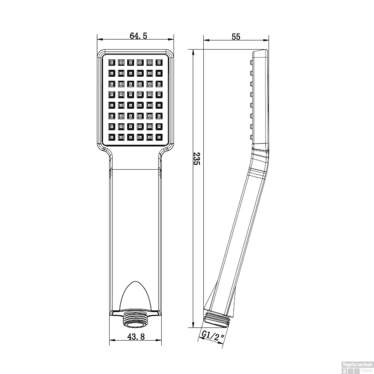 - Complete diepte handdouche: 5.5 cm