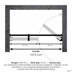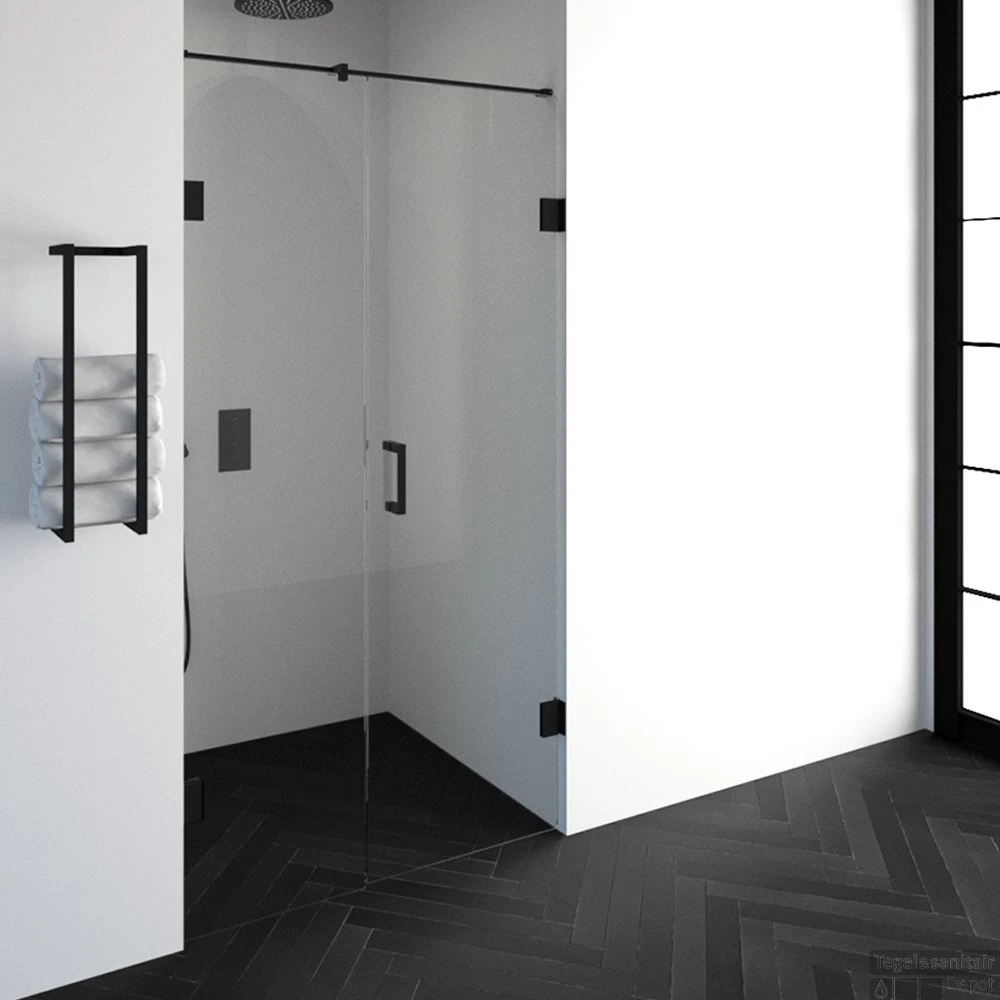 Deze complete nisdeur bestaat uit een inloopwand en draaideur met Mat Zwart beslag. Inclusief glasbehandeling en optionele kunststof profielen. De hoogte is 200 cm. Deze nisdeur straalt luxe uit door zijn design en kleur.