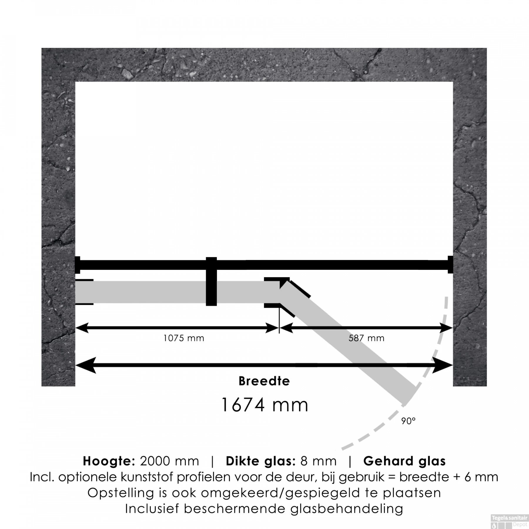 Specificaties Nisdeur Compleet Just Creating Profielloos 2-Delig (Draaideur Bevestigd op Inloopwand) 170×200 cm 110/60 Chroom: