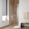 Een nisdeur is een mooie uitvinding om een afgesloten douchecabine te maken met een bestaande muur of wand. Daarnaast kan een nisdeur ook praktisch zijn in een ruimte met afwijkende maten. De Van Marcke Go Avis nisdeur heeft een breedte van 90cm en is slechts 185cm hoog. 185cm is vrij laag want gemiddeld is een nisdeur 190 tot 200cm hoog. Ook met de hoogte kunt u alle kanten op.