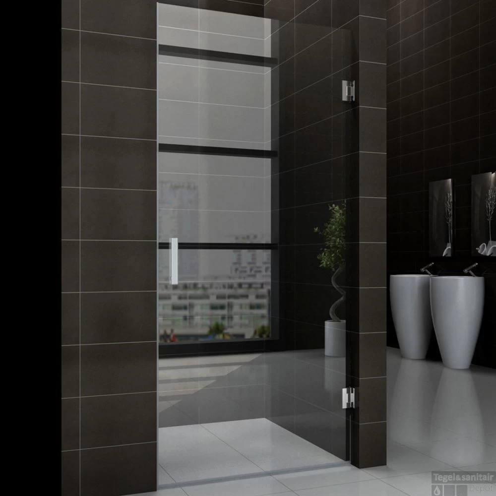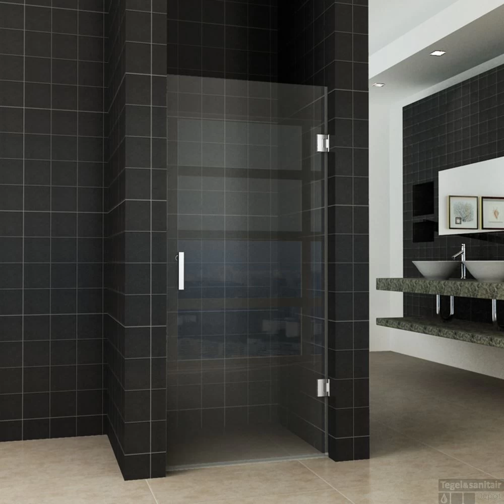 De nisdeur zorgt ervoor dat het water en de warmte in de doucheruimte blijft. Omdat de nisdeur geen profiel heeft zal deze een strak en ruimtelijke uiterlijk aan uw badkamer geven. De deur is 8 mm dik en is gemaakt van speciaal veiligheidsglas. Door zijn universele scharnieren is de nisdeur links en rechtsdraaiend te plaatsen. Ook is de deur naar binnen en naar buiten te draaien.