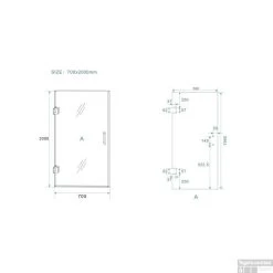 LET OP: Omdat de deur ook op een douchebak te plaatsen is zijn de afmetingen 2 á 3 cm kleiner als aangegeven op de specificaties