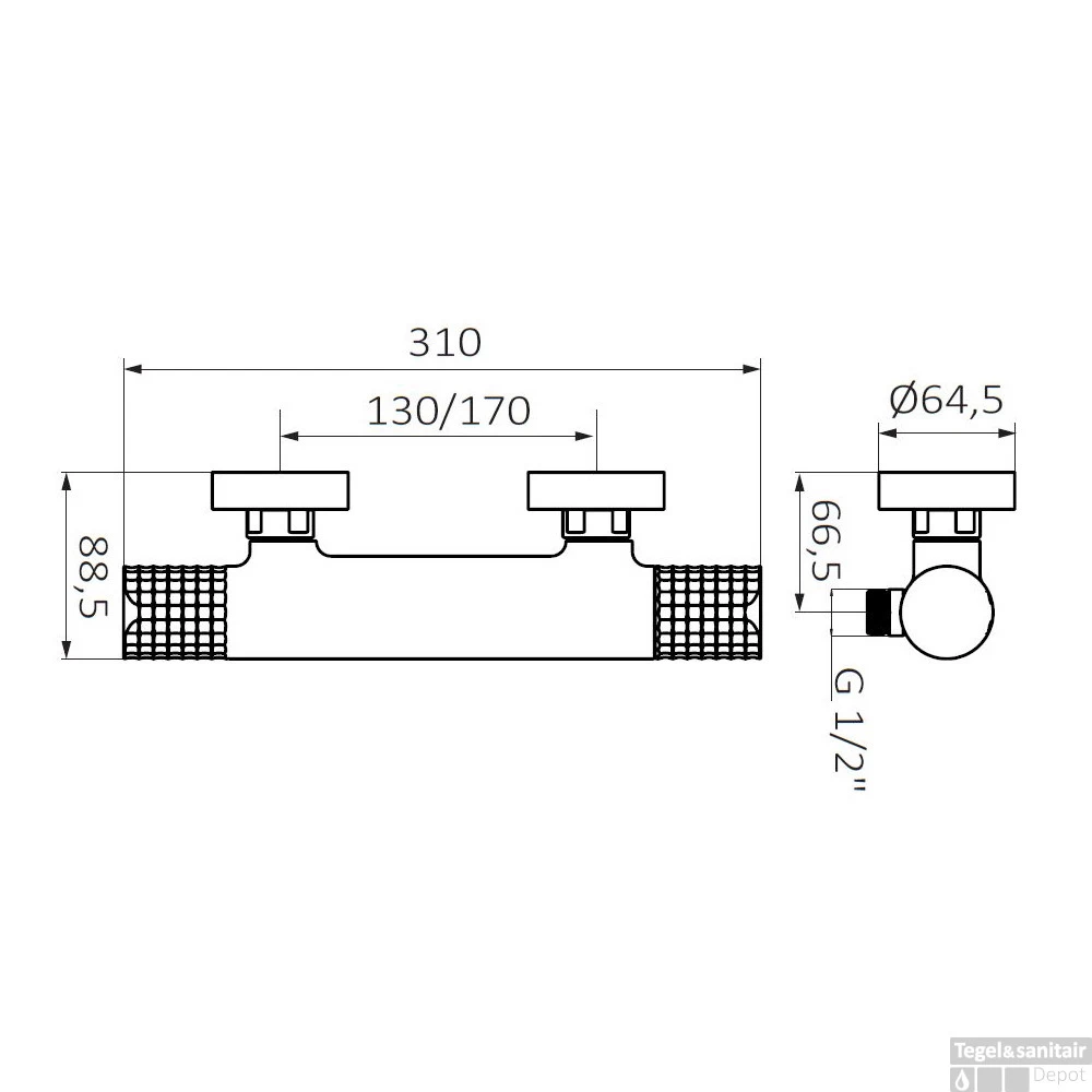 Specificaties Opbouw Douchekraan GRB Aura Thermostatisch Wit en Chroom: