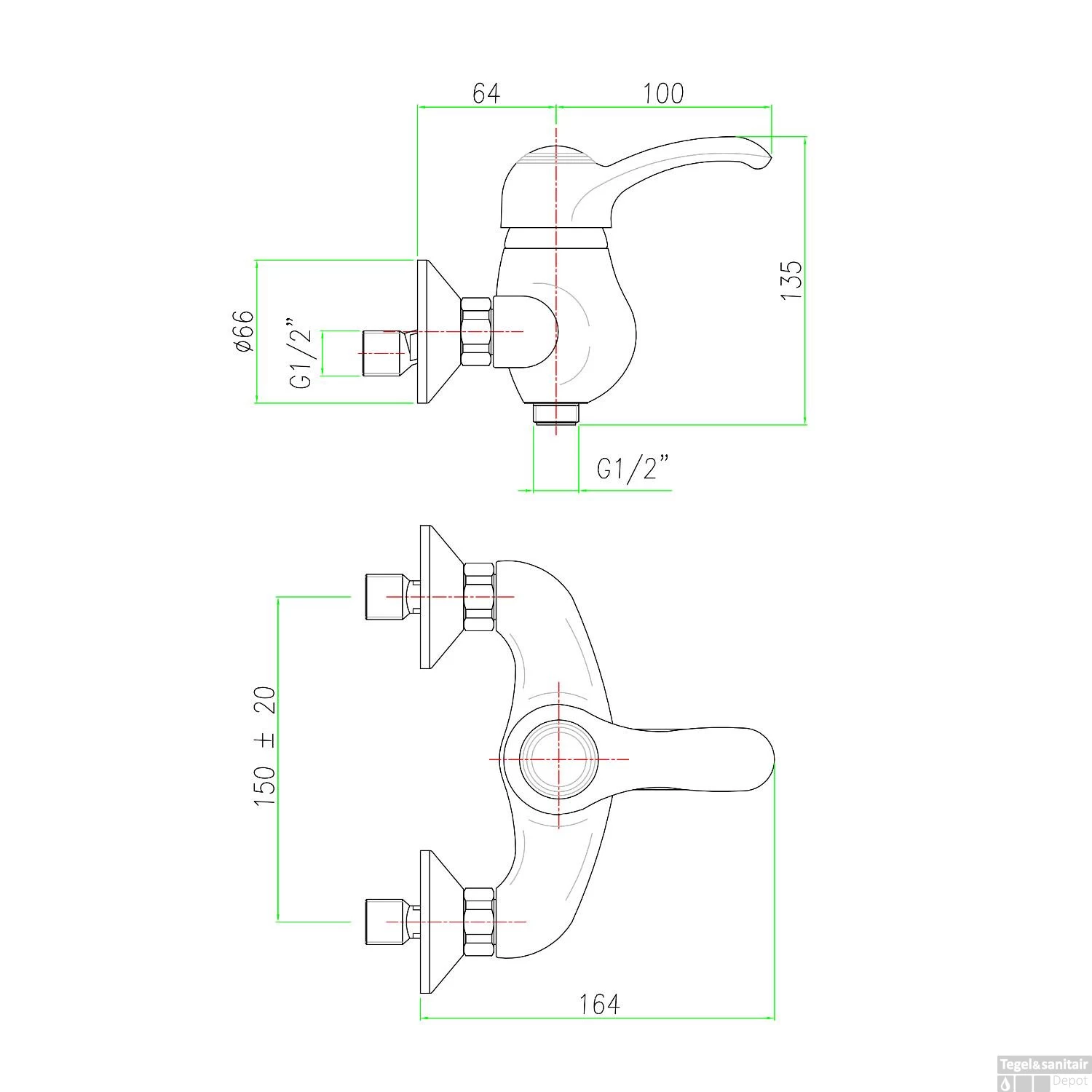 Specificaties Opbouw Douchekraan Mengkraan 1-hendel Brons Sapho Kirké: