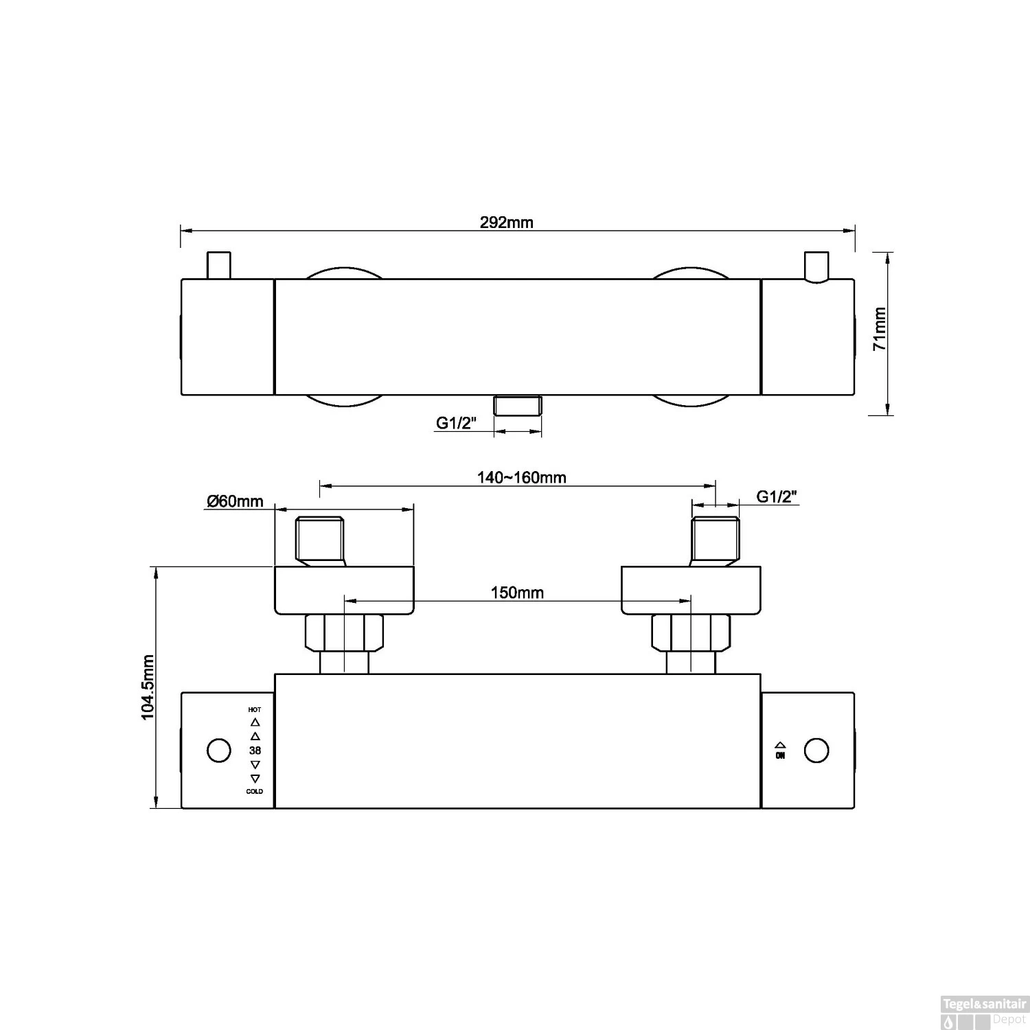 Specificaties Opbouw Douchethermostaat Wiesbaden Cool Touch Geborsteld Koper:
