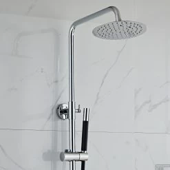 De uitloop heeft een totale lengte van 32,5 cm. Hierop bevestigt u de ronde hoofddouche die een diameter van 20 cm heeft. De uitloop, hoofddouche, thermostaatkraan en handdouche hebben een afwerking in de kleur chroom, terwijl de doucheslang en de handdouche een zwarte kleur hebt. Dat zorgt ervoor dat de Talpa Pro opbouw regendoucheset een zeer fraaie kleurencombinatie heeft die een directe blikvanger in uw badkamerruimte zal zijn!
