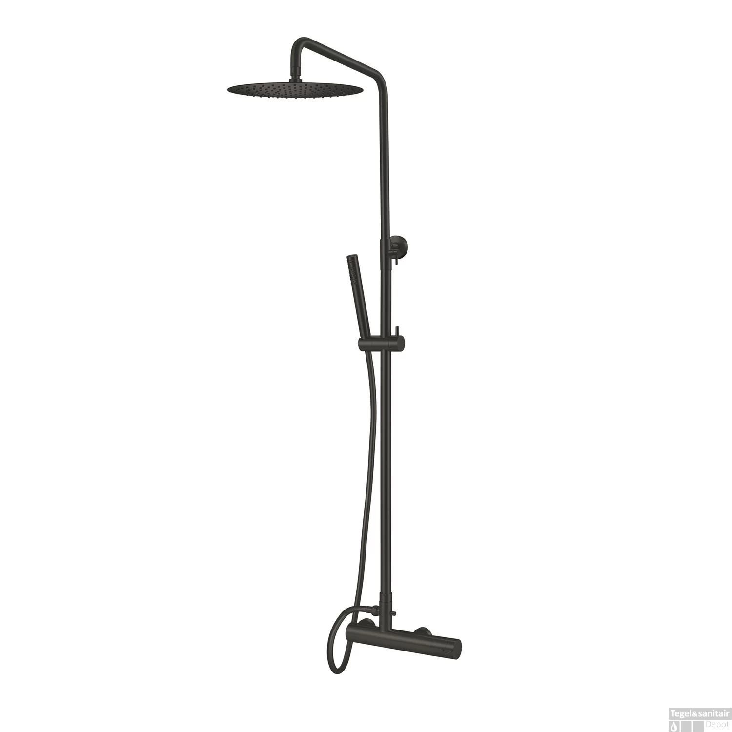 Opbouw Regendoucheset Qisani Flow Thermostatisch Geborsteld Mat Zwart