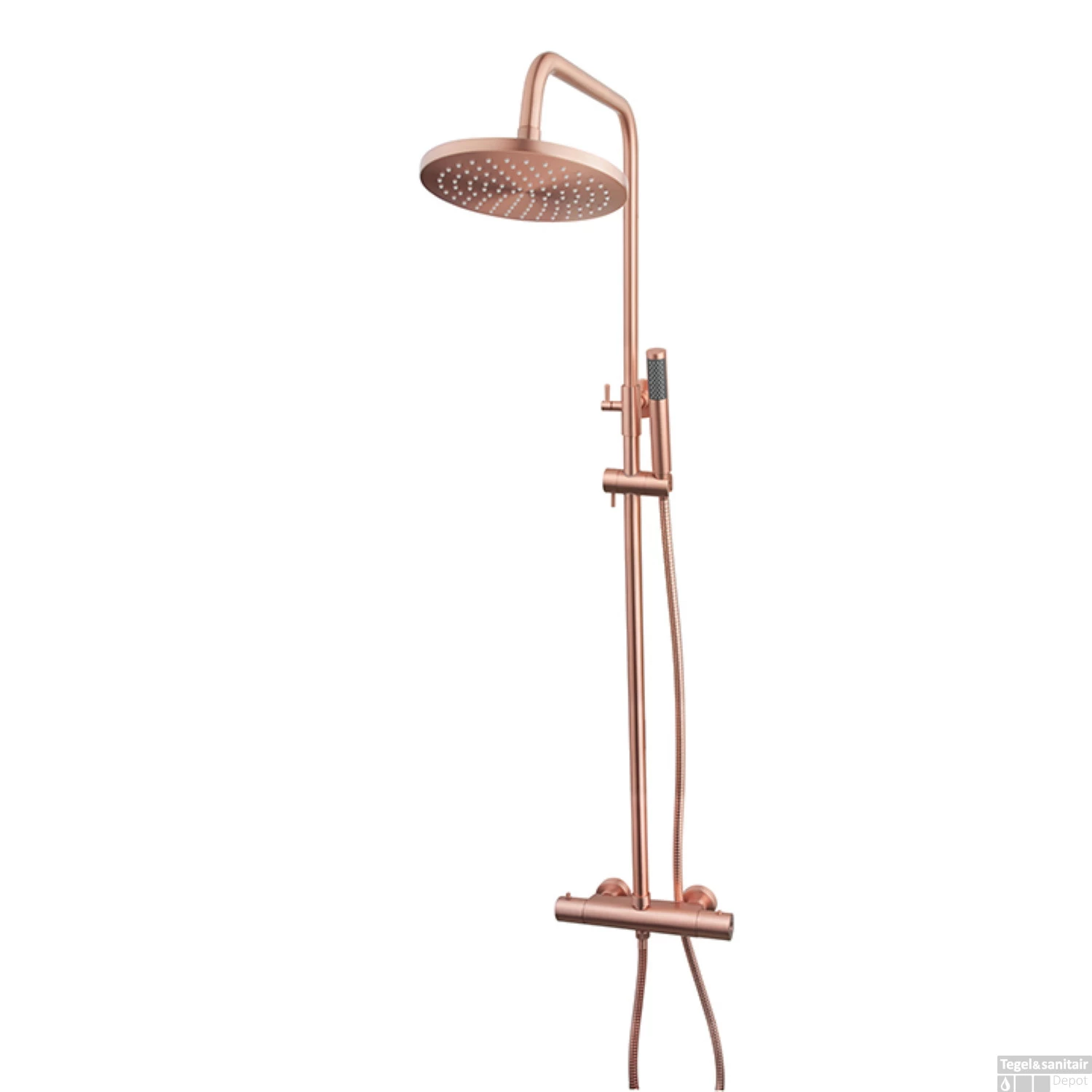 Opbouw Regendoucheset Wiesbaden Caral Thermostatische Mengkraan Geborsteld Koper