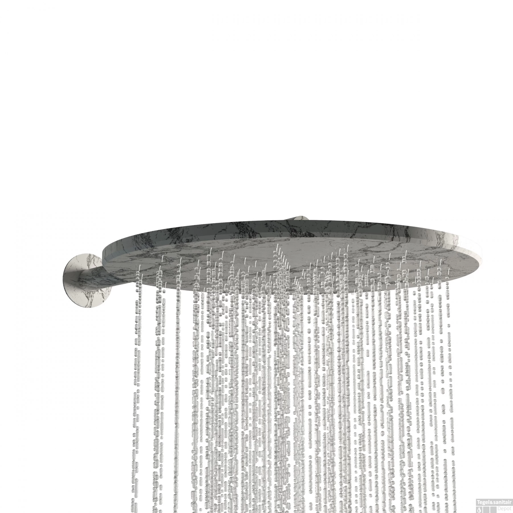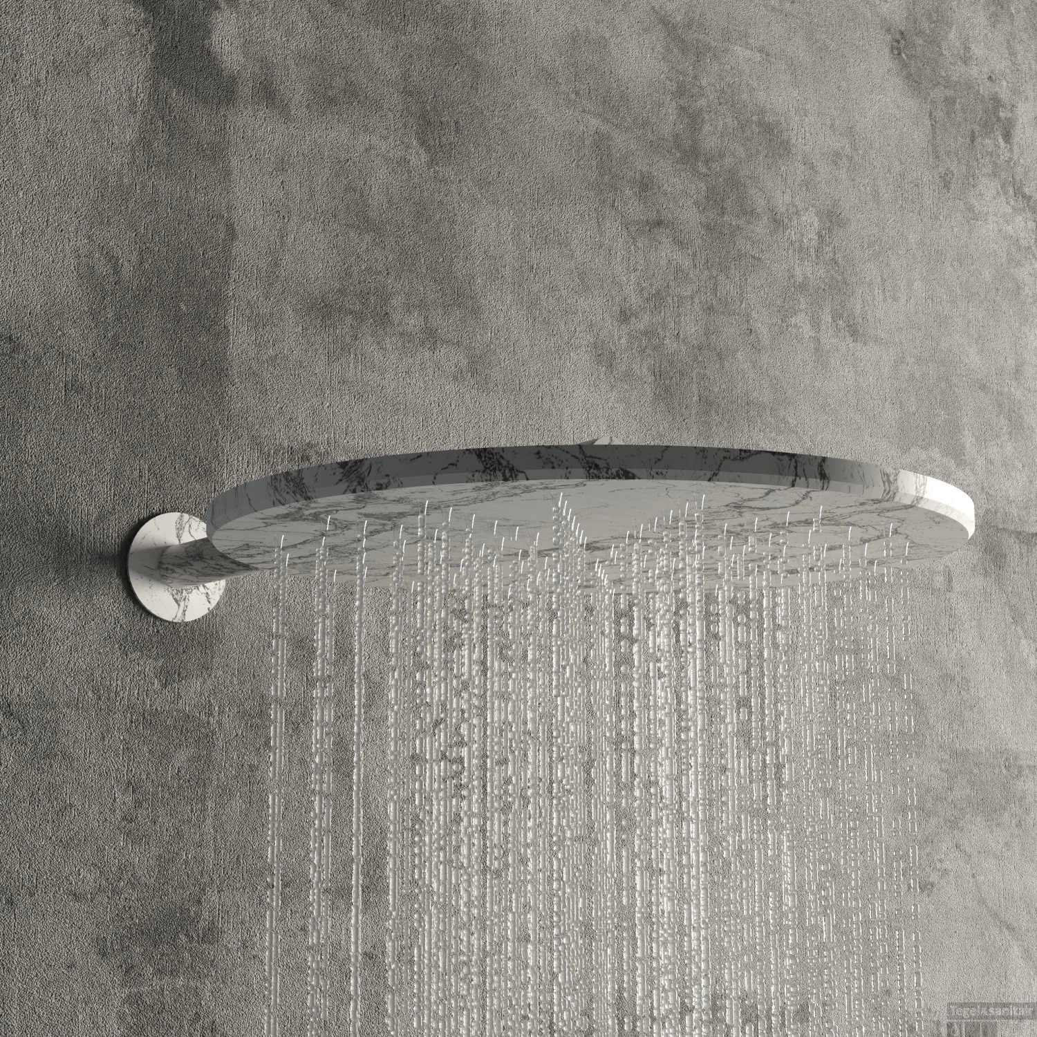 De douchekop is gemaakt van hoogwaardig RVS materiaal en gecoat met de bijzondere witte marmer afwerking. In deze afwerking zijn grijze nerven aangebracht. De bijpassende wandarm dient u apart bij te bestellen. Dit kunt u hieronder doen.