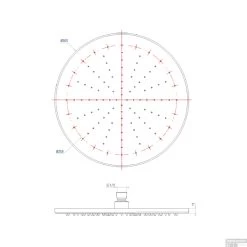 De douchekop heeft een diameter van maar liefst 30.5 cm. De spuitgaten strekken over een oppervlakte van 25 cm in diameter. De kop is 1.1 cm dik.