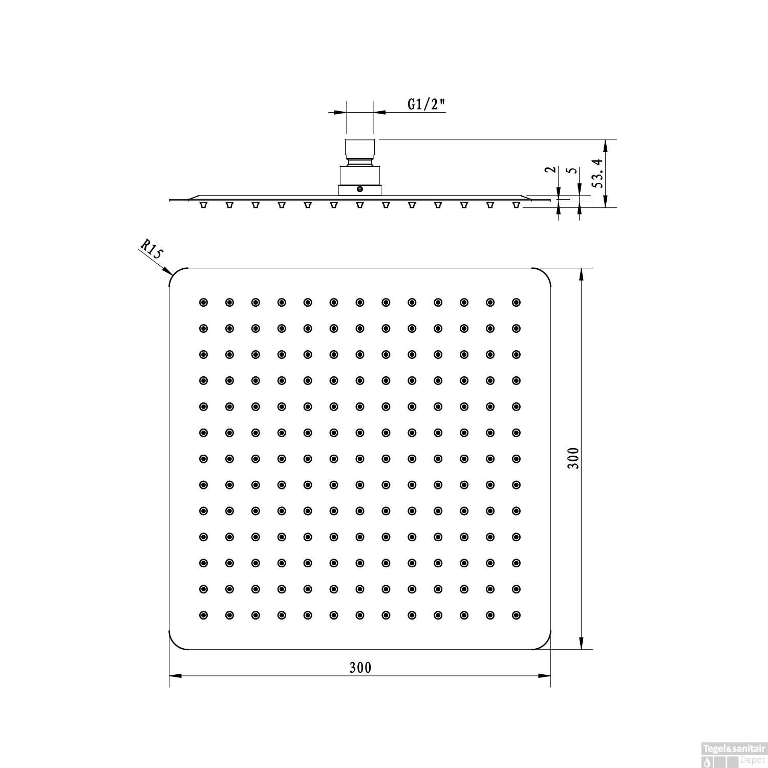 Specificaties Regendouchekop Vierkant 30 cm RVS Gepolijst Sapho Slim: