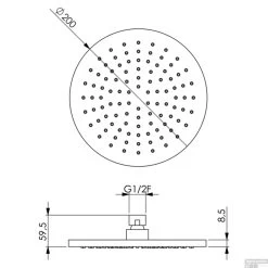 De regendouche van deze set heeft een ronde hoofddouche met een diameter van 20 cm, terwijl de lengte van de uitloop 50 cm bedraagt. De set bestaat verder uit handdouche met een lengte van 18 cm en een rond inbouwdeel. Het inbouwdeel bestaat uit twee knoppen waarmee u de temperatuur bepaalt en de kraan aan- en uitschakelt.
