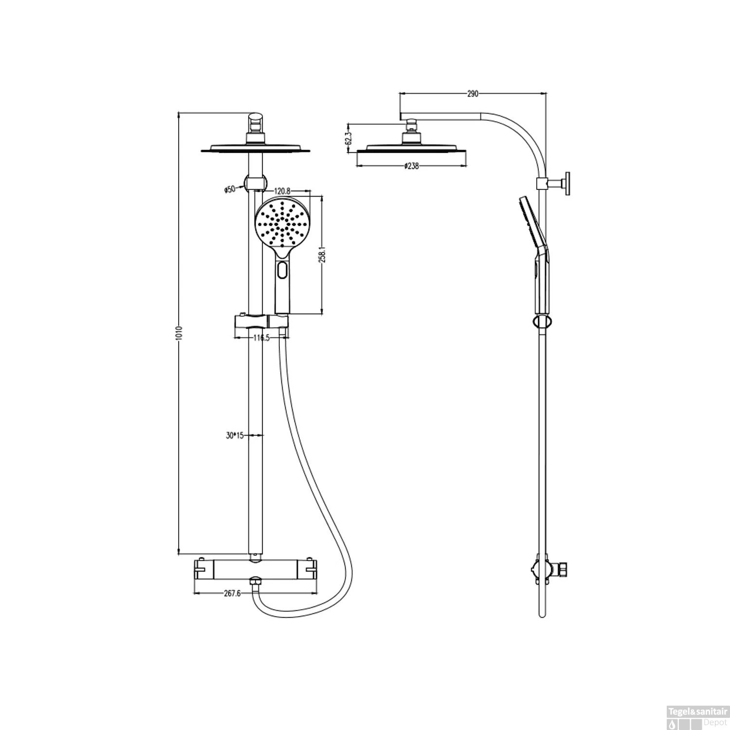 Specificaties Regendoucheset Madura Fresh Opbouw Thermostatisch Chroom: