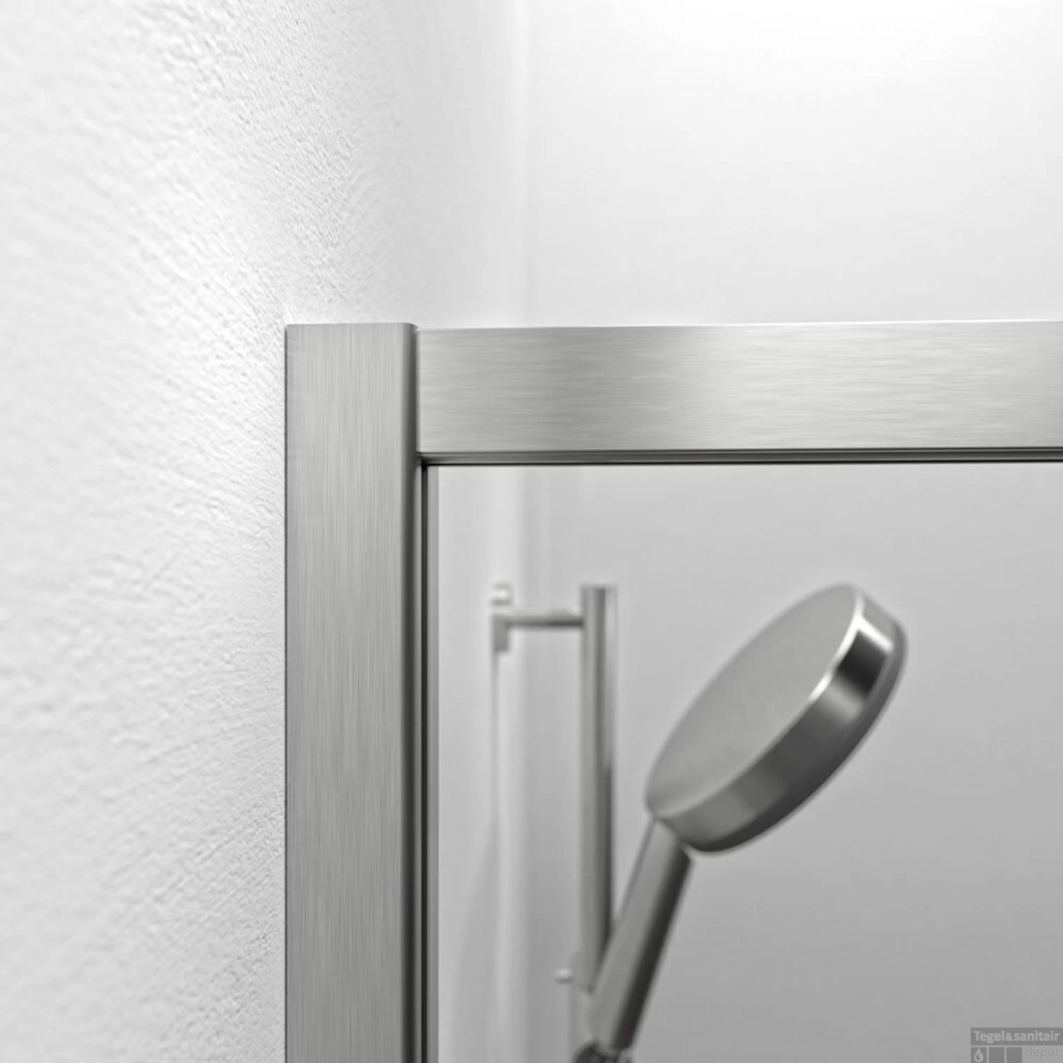 Het 6 mm dikke veiligheidsglas is voorzien van een antikalk laag, waardoor je douche langer helder blijft. Doordat de deur schuift, past deze ruime oplossing ook in kleinere badkamers. De robuuste afwerking in geborsteld RVS zorgt voor een krachtig en tijdloos design statement in iedere badkamer.