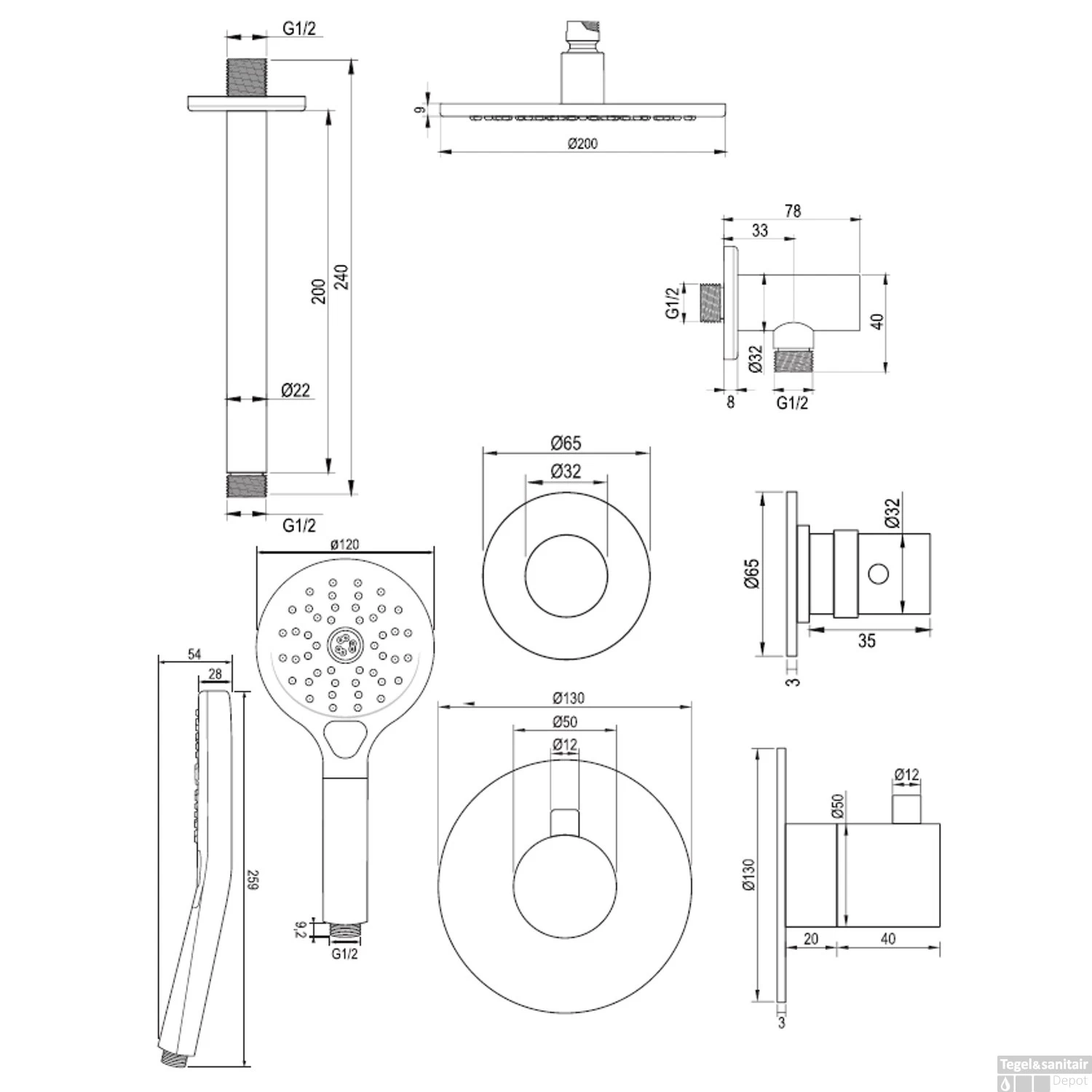 - Diameter Hoofddouche: 20 cm