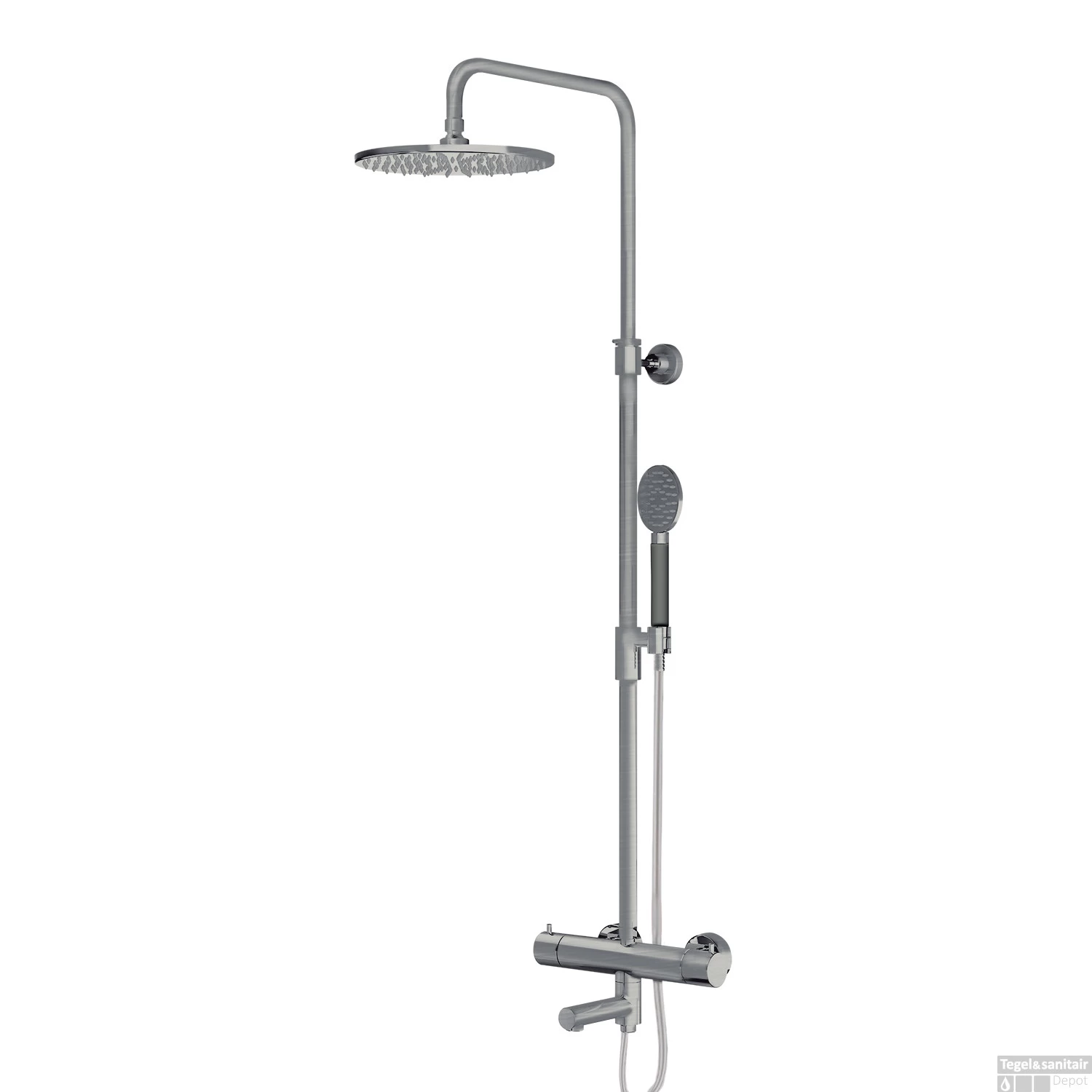 Thermostatische Regendoucheset Lagoo Garda voor Bad/Douche met Handdouche Rond Geborsteld Nikkel