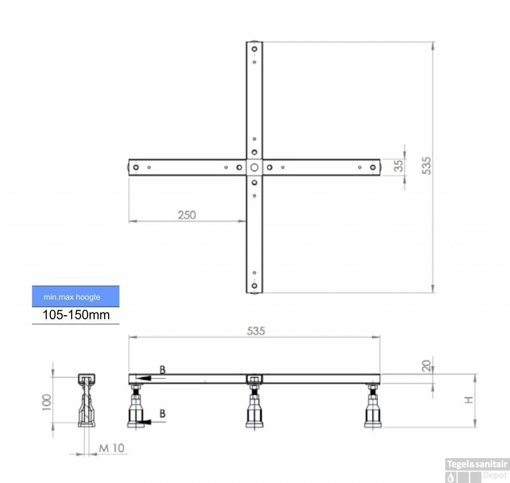 Deze douchebakpotenset zijn universeel toepasbaar op alle douchebakken. MEPA Douchebakpoten voor douchebakken van Staal en acryl. voor staal en acryl douchebakken van minimaal 75 x 75 cm tot maximaal 90×90 cm, 6 cm in hoogte verstelbare Schroef voet, in hoogte verstelbaar van 105 – 150 mm