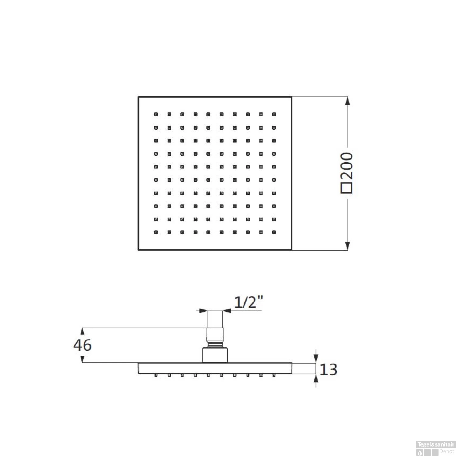 Specificaties Vierkante Hoofddouche Herzbach Living Spa 20 cm Koper: