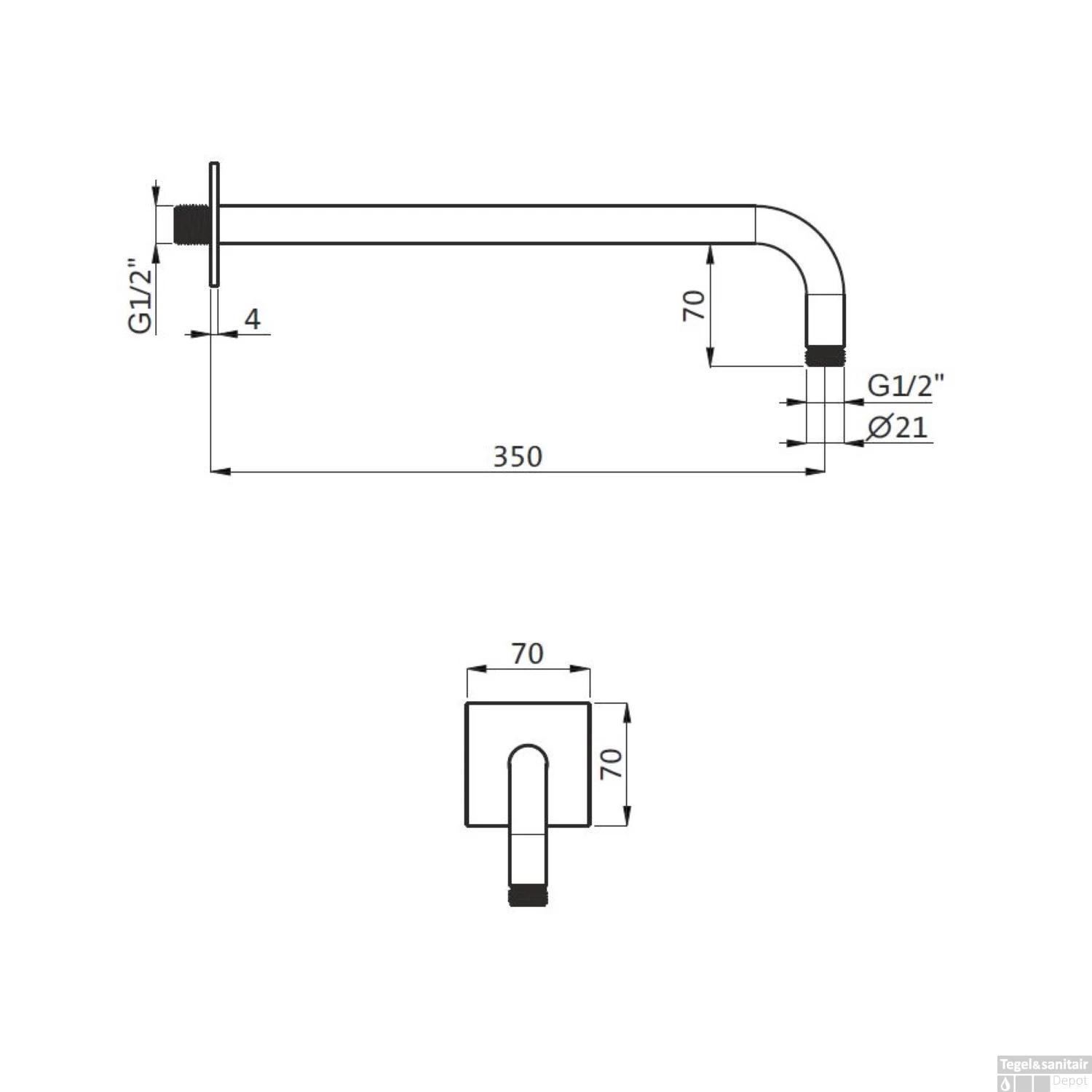 Specificaties Wanduitloop Herzbach Living Spa PVD-Coating 35 cm Vierkant Rozet Zwart: